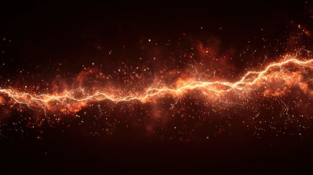 Fiery electric lightning bolt on a dark background. Energy discharge with bright sparks. Abstract power effect for technology and scientific concept background.