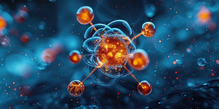 Atomic structure visualization showing molecule bonds, electron configuration, and atom arrangement. Science, chemistry, and education themes for molecular research and development.