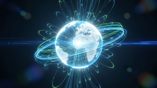Vivid close up of an atom showcasing central nucleus and electrons in dynamic motion