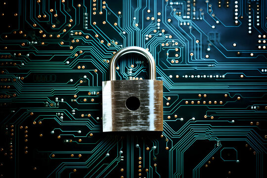 Cyber security Concept with Close-Up of Computer Motherboard, Safety Lock, Verified Credentials, and Login – Wide Banner Design for a Trustworthy Connection Securing the Digital Frontier