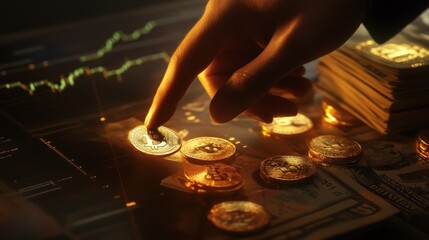 Bitcoin stacks with digital financial growth charts