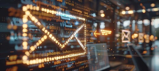 Email icon with digital elements in blue processing theme