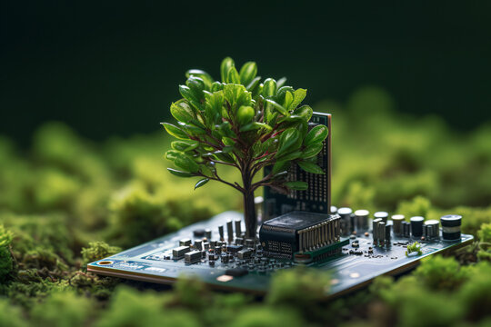 A close-up of a computer CPU with glowing orange lights on a circuit board. The image evokes technology and innovation.