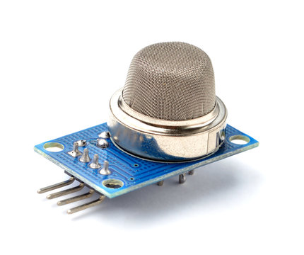 Gas, air and fire detector module for electronic parts. Isolated on white background.