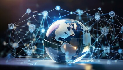 Abstract network connections with blue nodes on white background symbolizing data flow and digital communication concept wallpaper backdrop texture light.