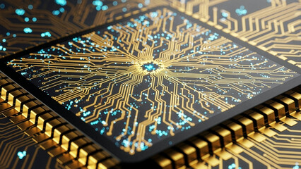 Innovative high tech circuit board background showcasing intricate electronic components and mesmerizing blue lighting