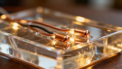 Macro Shot of Electronic Components: A close-up view reveals delicate electronic components encased in clear resin, hinting at intricate technology.
