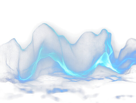 Abstract digital landscape of glowing blue and pink wave-like grids with scattered bright dots on a dark starry background