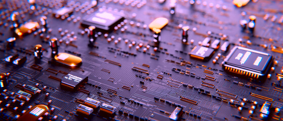 Futuristic circuit board and data interface concept art