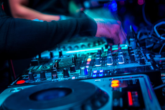 dj mezclando en directo en discoteca musica electronica