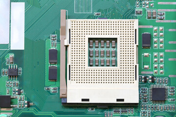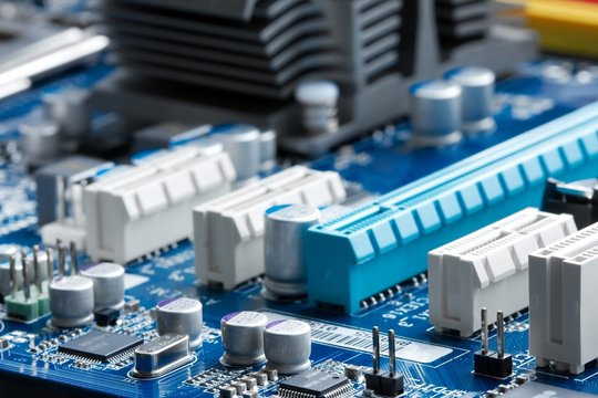 Displaying 5x5 domed led binary matrix on printed circuit board closeup, colorful pcb electronics ma