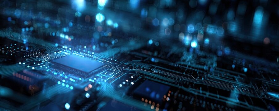 computer chips assembly line in manufacturing plant, modern electronics production factory