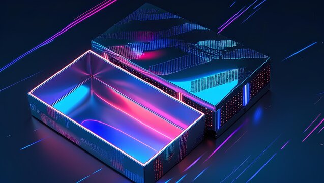 Futuristic Neon Tech Box with Glowing Circuits — AI Cyberpunk Electronics Concept