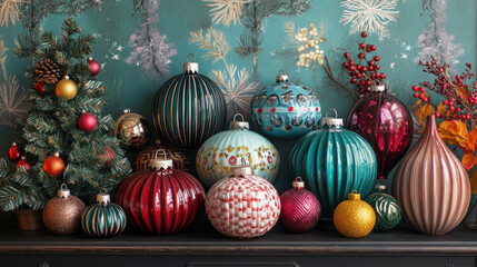 Retro style holiday balls and festive decorations for christmas interior design