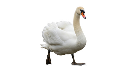 Mute swan flapping wings with one leg up isolated PNG with Transparent Background