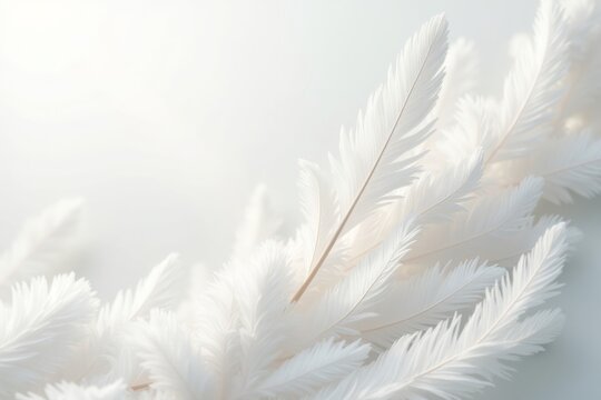 delicate background of overlapping white feathers, soft shadows, airy and gentle texture, elegant designs