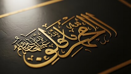 Detailed gold foil arabic script on black background representing islamic religious verses