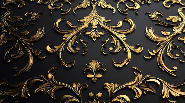 Elegant Green Damask Pattern with Intricate Flourishes and Timeless Appeal
