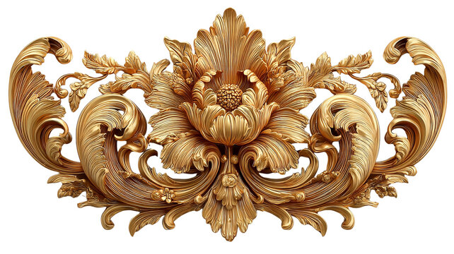 Ornate Golden Floral Ornament With Intricate Scrolling Leaves And Petal Details On A Transparent Background Transparent Background