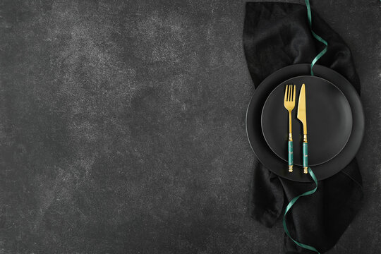Elegant Tableware On Dark Dining Table Images