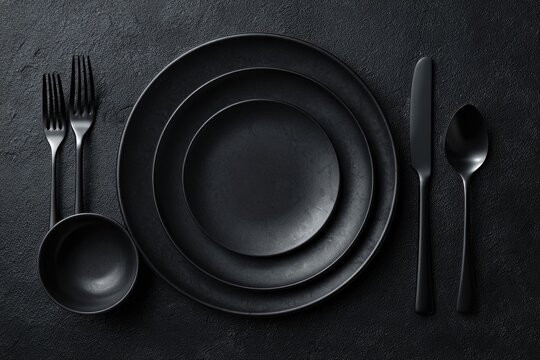 Dark, elegant, minimalist tableware arrangement