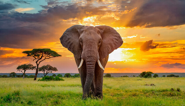 elefante en la sabana al atardecer