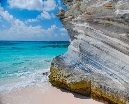 The blue skies and turquoise waters of the Caribbean island of Eleuthera, Bahamas