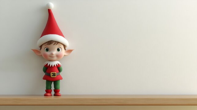 Whimsical festive figurine perched on a shelf, adding touch of holiday cheer to any home decor