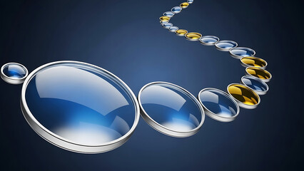 Blue and gold oval shapes on dark blue background silver