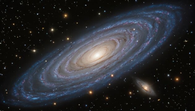 Abstract celestial system with orbital bodies in deep space