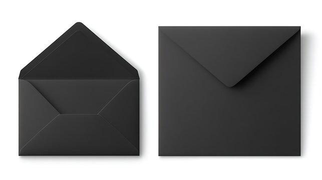 A sleek black envelope accompanied by a blank mail card mockup. Realistic vector illustration of a modern empty postcard template, isolated on a white background .