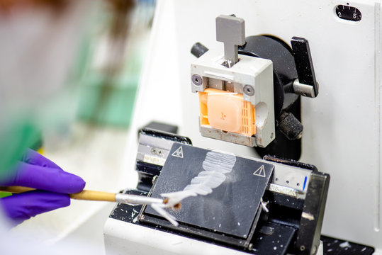 Scientist embedding tissues in paraffin blocks for sectioning. Pathology laboratory. Cancer diagnosis.