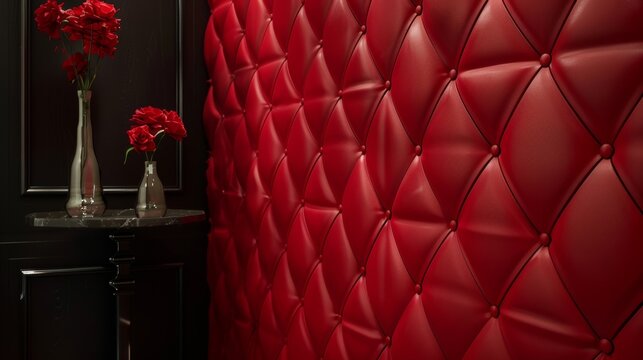 Burgundy embossed fan-pattern wallpaper evoking vintage theater glamour and luxury interior