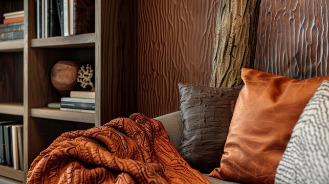 Three textured leather panels of different colors and patterns, creating an interesting composition