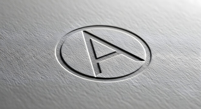 Modern letter A logo mockup embossed on a textured metallic silver surface for elegant corporate branding