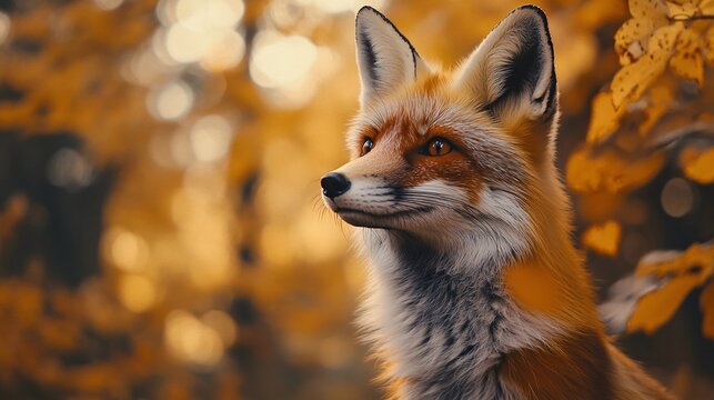 Beautiful fox bathed in golden sunlight, staring into the distance. Majestic wildlife imagery with a warm, captivating ambiance.