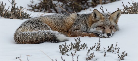 A fox nestled comfortably in a blanket of snow, embracing winter s chill and serenity
