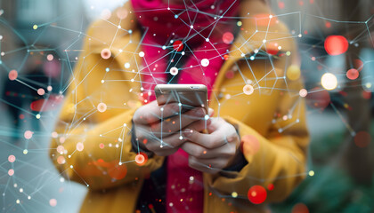 Businesswoman embracing technology and global connectivity