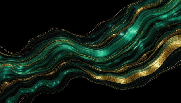 Draping emerald satin with gold glitter trail for luxury backgrounds and festive design