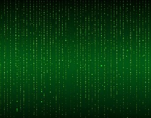 Abstract stream of golden light particles and waves flowing over a rich emerald green background, symbolizing data transfer, connectivity, and technological advancement with glowing energy