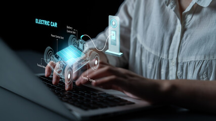 Structure of electric car showing battery system, traction motor, control units, and charging station for understanding EV functionality and energy flow Latch