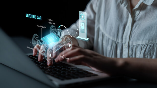 Structure of electric car showing battery system, traction motor, control units, and charging station for understanding EV functionality and energy flow Marrow