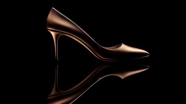 A pair of elegant high-heeled shoes on a black background with dramatic lighting to emphasize their design