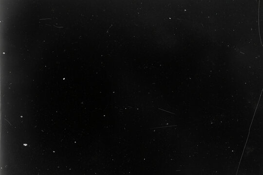 Deep dark vintage photo background, almost pure black with subtle vignette, dust specks and faint scratches, analog film grain texture with empty copy space for text, poster, overlay, cinematic