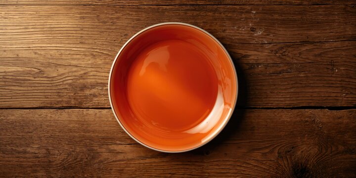Empty wooden boat floating on calm water surface