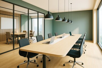 Modern empty conference room with large table and chairs