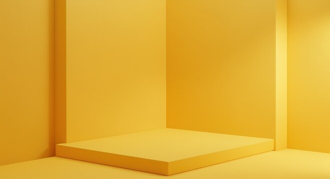 Pedestal of Platform display with black stand podium on dark room background. Blank Exhibition or empty product shelf. 3D rendering.