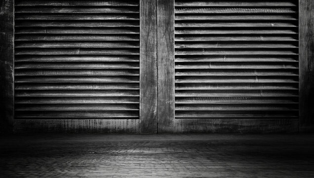empty room with wall door blinds, gray background. Premises for the studio.
