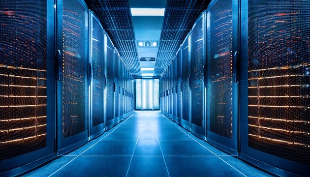 high tech data center with glowing server racks