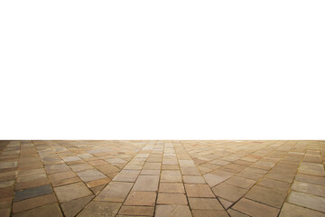 Flower bed in the park. The sidewalk is covered with red paving slabs.